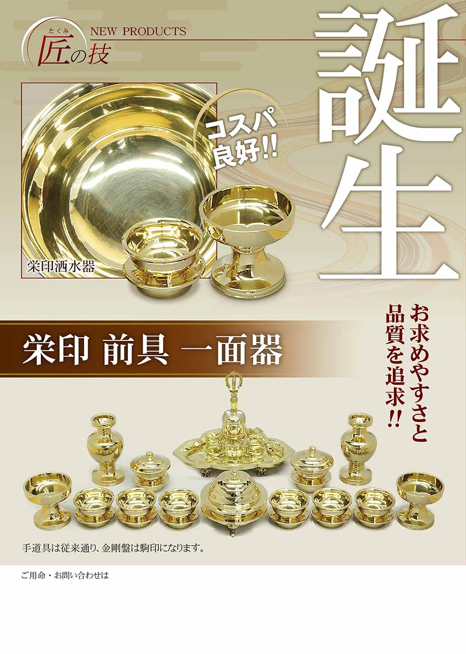 上等品(栄印)前具一面器ミガキ仕上 京仏具(株)作島 スタッフブログを更新しました。 お時間ございましたらご覧ください。