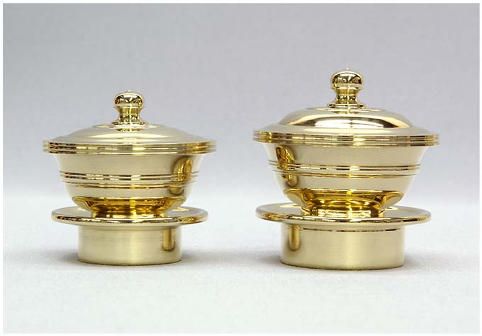 極上品塗香洒水器です。 密教法具の前具の一つで大檀や護摩壇などに設置して使用されます。 「塗香器(ずこうき)」は塗香を入れる器、「洒水器(しゃすいき)」は香水を入れる器といわれ、あわせて二器と呼ばれま...