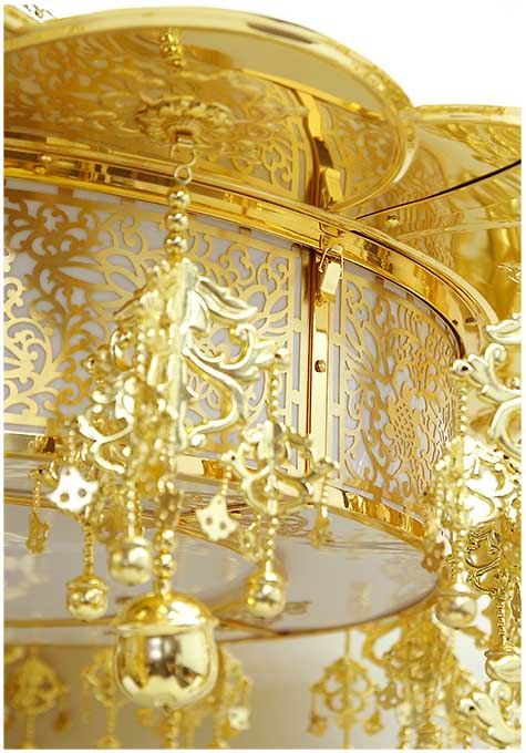 八蓮型照明灯 極上品 本金メッキ仕上げです。 屋根が蓮の葉をモチーフにした形となっています。 垣板は「宝相華文様」をモチーフにしたデザインで透かし模様になっています。 細部まで手を加えて製造しています...