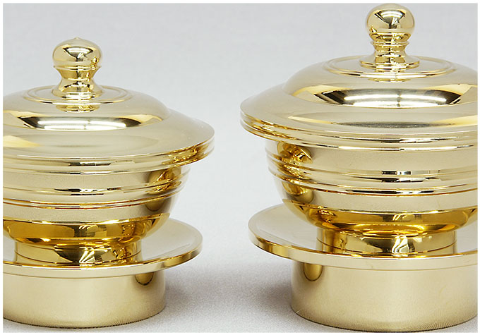 塗香洒水器 上等品です。 密教法具の前具の一つで大檀や護摩壇などに設置して使用されます。 「塗香器(ずこうき)」は塗香を入れる器、「洒水器(しゃすいき)」は香水を入れる器といわれ、あわせて二器と呼ばれ...