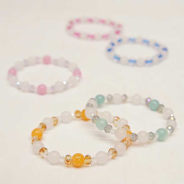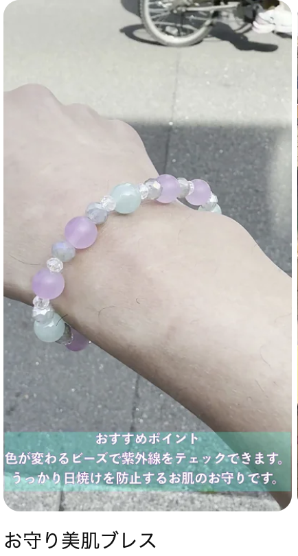 お守り美肌ブレスです。 紫外線で色が変わるビーズでUVテェックができます。 その特性をお守りという形にさせて頂きました。 うっかり日焼けを防止する お肌のお守りです。 キラキラデザインがワンポイントの...