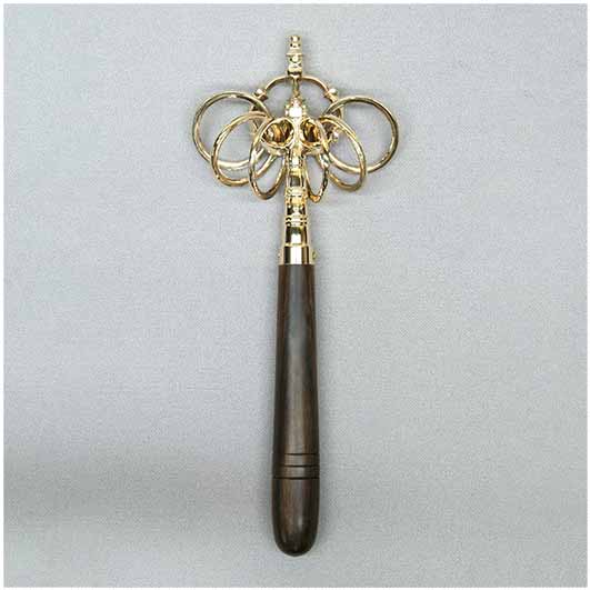 佐波理錫杖 六環 黒檀柄 中サイズです。 錫杖は僧侶や修験者が主に使用する法具です。 振り鳴らすことで煩悩や身に迫る危険を振り払うといわれます。 本体・環ともに佐波理を使用しています。 佐波理は「沙張...