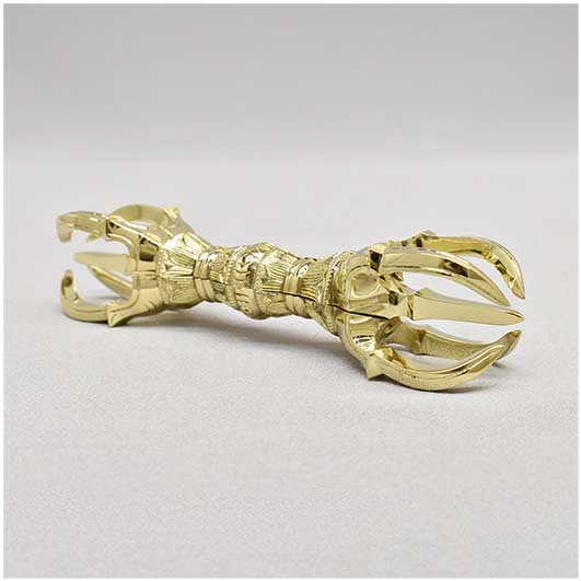 ちょっと違う五鈷杵、割五鈷杵です。 その名の通り五鈷杵が二つに割れている形状をしていて愛染明王の持物[じゅもつ]とされて金剛界の智徳、胎蔵界の慈悲を象徴するものとされ、愛染明王を修法する時に用いられる...