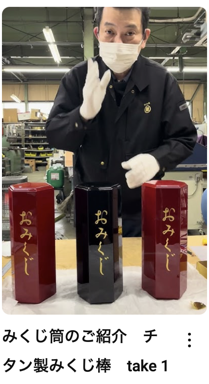 みくじ筒のご紹介 チタン製みくじ棒 take 1です。 チタン製のみくじ棒でみくじ筒を製作してほしいとのご依頼で製作しました みくじ筒のご紹介です。 ストッパー付きで棒が抜け落ちる心配がございません。...