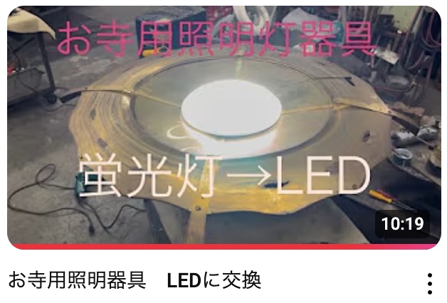 お寺用照明器具 LEDに交換です。 お預かりの照明器具蛍光灯から LED器具に交換いたします。 作島YouTubeチャンネルにアップしました。 お時間ございましたらご覧ください。