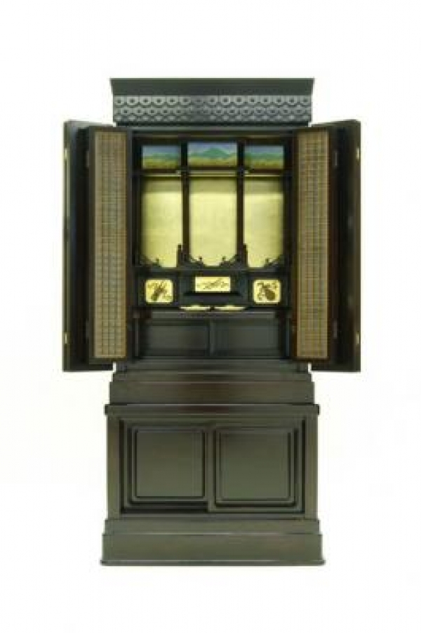 法隆寺天蓋の模様を彫り、金具に極楽浄土に飛ぶ蝶々をあしらい仏様を尊んだ崇高なるものになるよう心をこめて作りました 本紫檀、本漆本金箔押し仕上げです