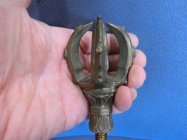 曇型五鈷杵の持ち手、ツマミ、取っ手です。 護摩釜の蓋や各種蓋にいかがでしょうか。 ネジ穴3分 真鍮六角ボルト付き 首下長さ4㎝ 1㎝くらい入ります(長さ調節カットは可)