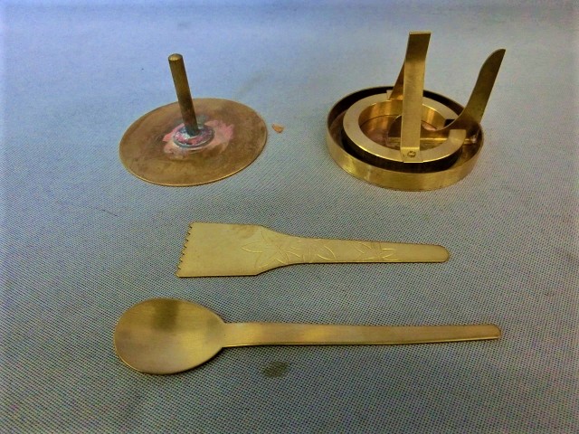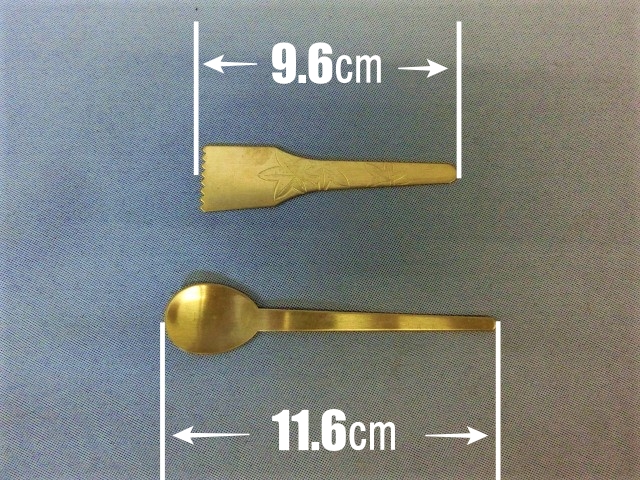 印判 直径 約5.5cm C文字幅 約7mm×高さ 約10mm 抜き型 直径 約7cm 灰コテ 直径 約7cm 灰ならし 長さ 約9.6cm 匙 長さ 約11.6cm |