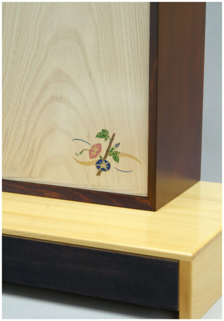 木地:桐 ヒバ 仕上加工:ウレタン塗装 加飾:蒔絵 |
