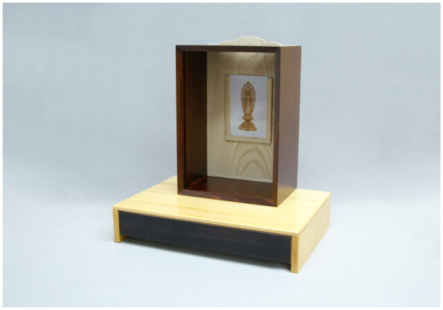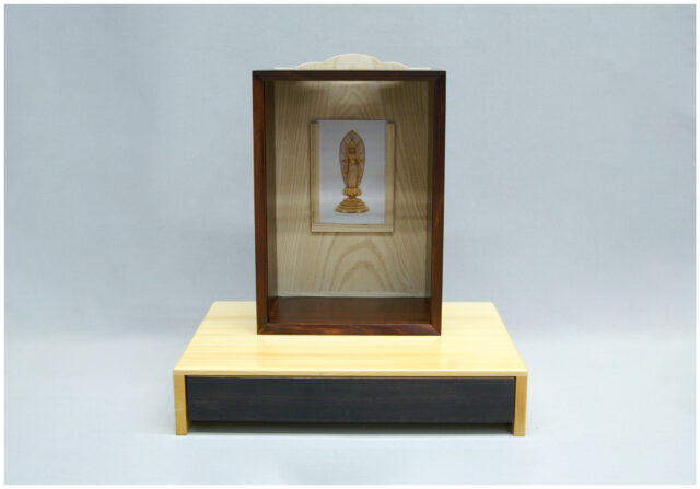 扉を開けている時は扉の裏面に写真など差し込むヶ所がありますのでご自由にお飾りください。 コンパクトなお仏壇ですので置き場所を選ばずお使いいただけます。 モダンなデザインですので、たまゆらももりん桜彫入、たまゆらももりんやupる型具足などとも合います。 |