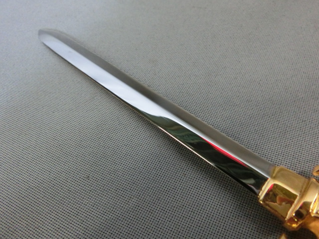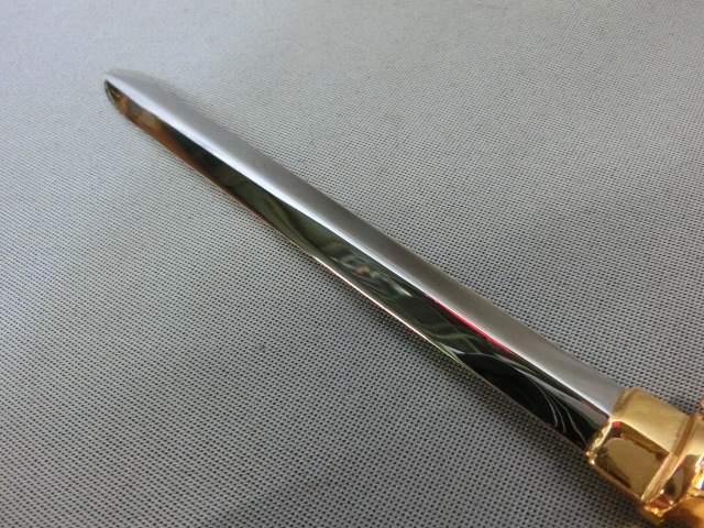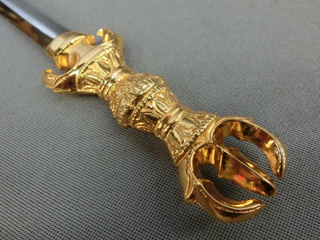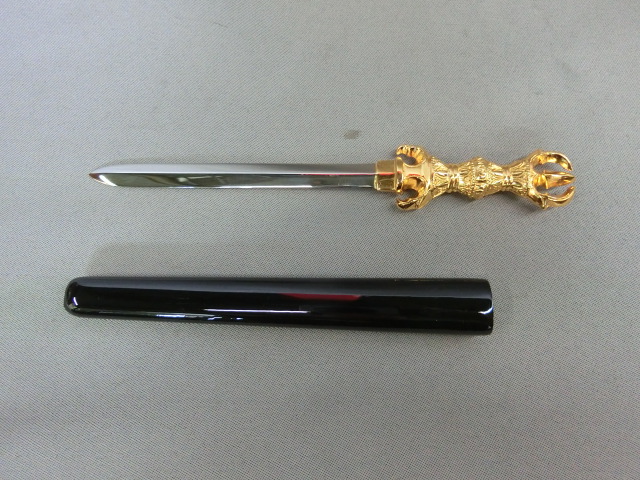 鞘に入れた長さで25㎝ 剣の全長22㎝ 刃の長さ約13㎝ 横幅1.2㎝ 三鈷~ハバキまで8.5㎝ |