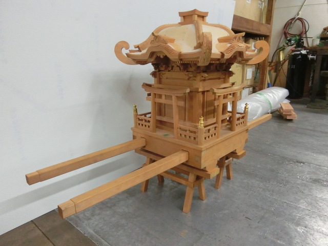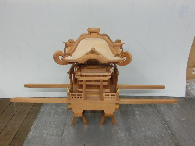 飾神輿 生地(白木の状態です) 屋根は唐破風型 長期保管品です。 錺金具もありますが全て揃っていないと思います。 鳳凰も付属しておりませんが(ネットショップ等でお買い求め出来ると思います)