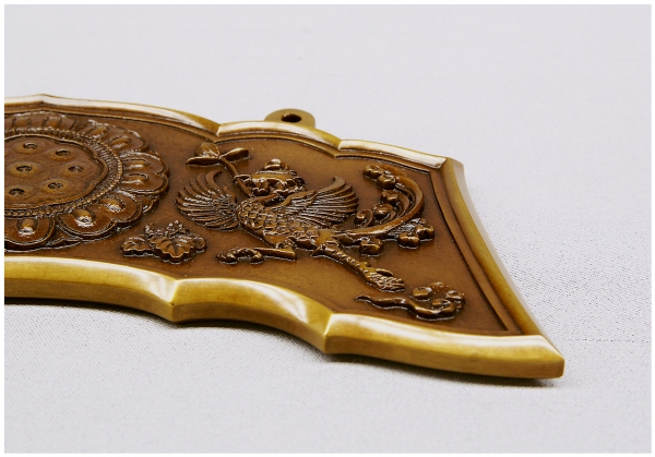 この磬は佐波理(さはり)という合金で製作されています。 佐波理は銅と錫の合金で高錫青銅と言われています。 錫の配合により硬くよく響く合金になりますが、製作するのが非常に難しくなり高度な職人の技術が必要とされます。 そのため量産ができませんので一枚ずつ手作業で製作しています。 是非とも一音一音感じていただけましたら幸甚に存じます。