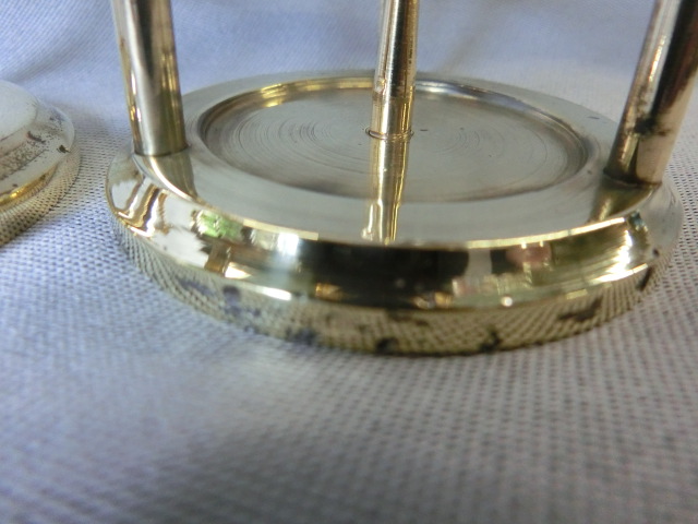 倉庫整理品 長期保管品です。 菊壇灯 8寸 ミガキ品 1対 芯抑えのツマミの線の入っている高さが違います 五徳の下台に鋳穴がありハンダで穴埋めしてあります