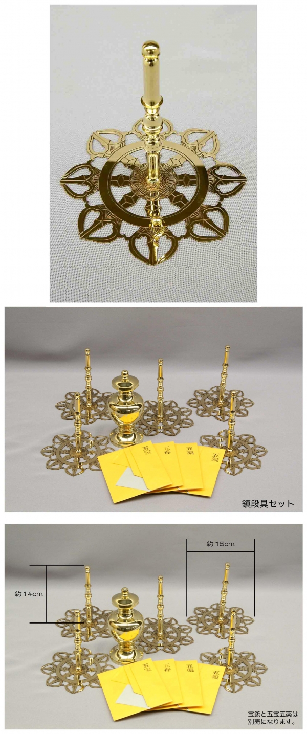一組セット(けつ柱輪宝 5ヶ、宝鋲、五宝五薬) けつ柱輪宝、1ヶから取扱しております。 宝鋲と五宝五薬も別売りしております。