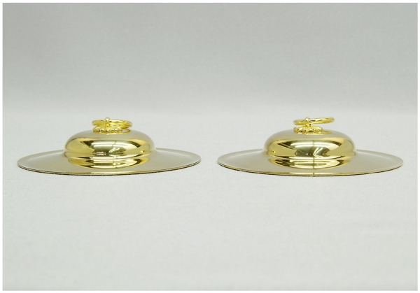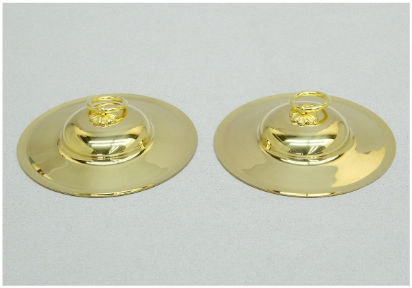 シンバルのような2枚の真鍮製の板を打ち鳴らして音を奏でます。