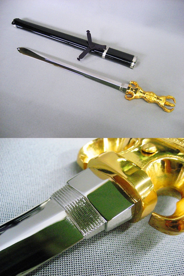 柄に金剛杵の一つである三鈷杵が付いた不動明王の「利剣」になぞらえた密教法具。 困難や煩悩を振り払う法具として用いられ、身近にあるだけで、厄除け・災難除けになるといわれています。