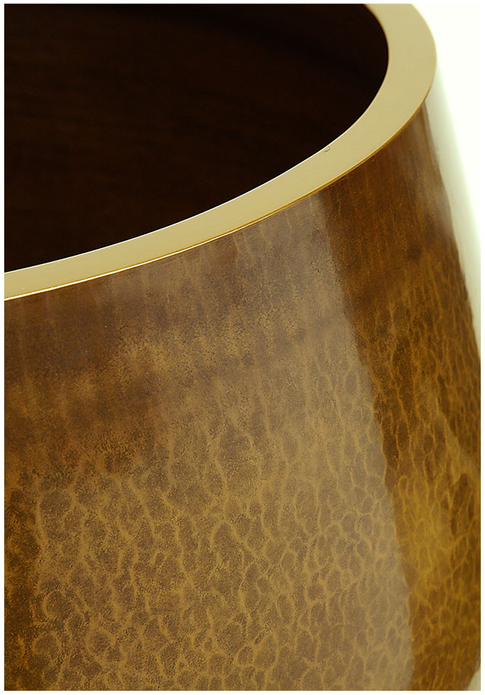 匠が鎚起の伝統技術により、1枚の黄銅板より打ち延ばしたものです。