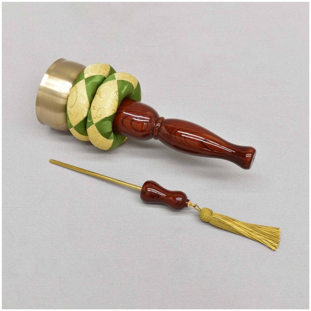 二寸八分 おりん口径:約8.4cm(二寸八分)全長(房除く):約29.5cm 三寸 おりん口径:約9cm(三寸)全長(房除く):約30cm |