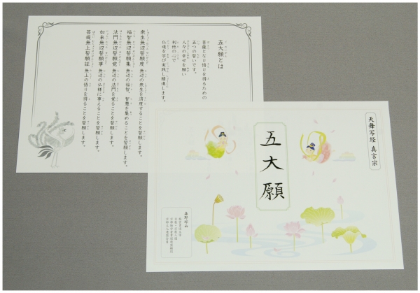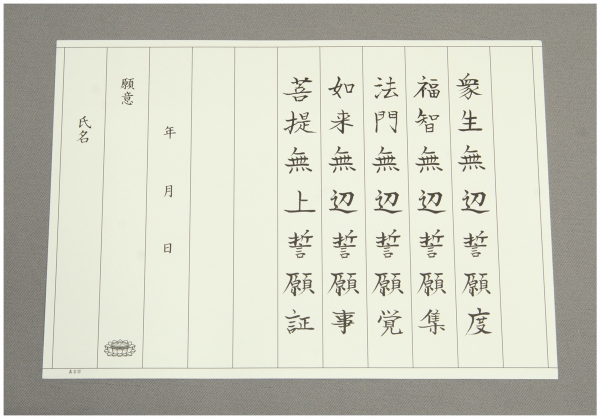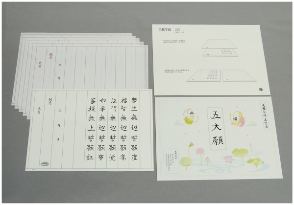 五大願の写経セットです。 短い写経ですので時間もかからず手軽にしていただきます。 写経の入門として最適なセットになっています。