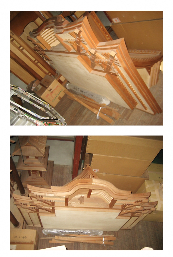 屋根張サイズ 横幅約六尺(約180cm) 奥行約三尺七寸(約112cm) 下台 横幅約四尺九寸(約148cm) 奥行約二尺三寸(約70cm) 総高さ約七尺六寸(約230cm)