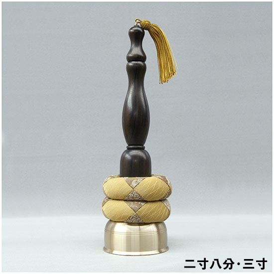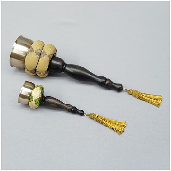 バチが柄に内蔵されているマグネットでしっかり付くので、作法中や バチには房が付いていますので叩くときにも持ちやすくなってます。 |