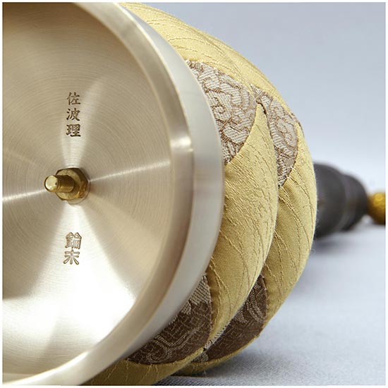印金は佐波理で製作されています。 佐波理は昔から使われている響銅と言われる金属で錫と銅などの合金で叩くとよい音がしますので鳴り物に適しています。