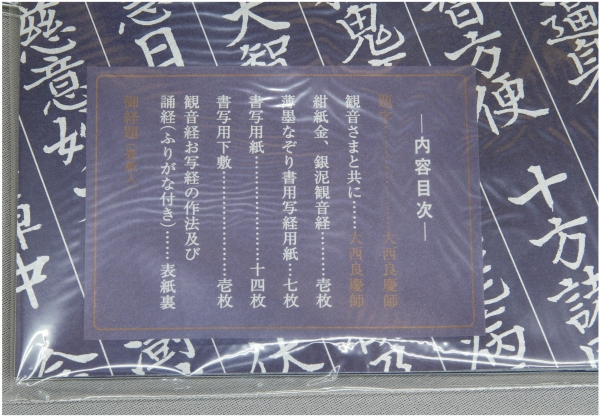 安らぎへの心 観音経(かんのんきょう)お手本と用紙がセットになった、写経セットです。 経文を書き写す写経です。『観音経』は法華経のなかの「観世音菩薩普門品第二十五」という一章です。 難しく考えずまずは書いてみて下さい。集中していくうちに心が落ち着いてリラックスできると思います。