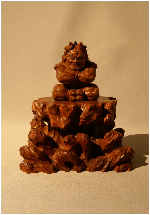 桜材で製作された大仏師松本明慶氏による仏像です。 ポイントで角には沈香を使用しています。