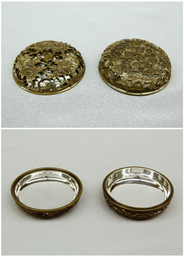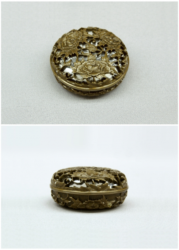 牡丹唐草の模様を透かし彫りで仕上げた、ひと手間かけた素敵な香合です。