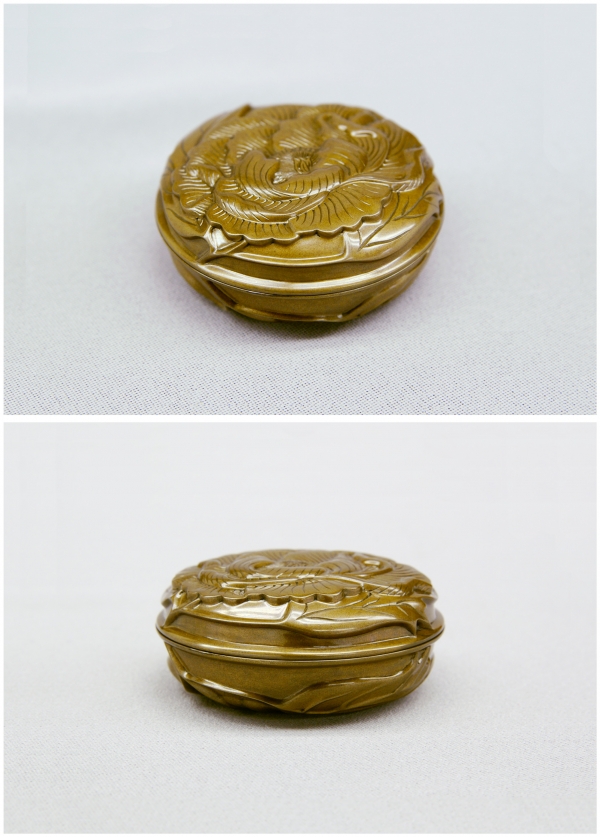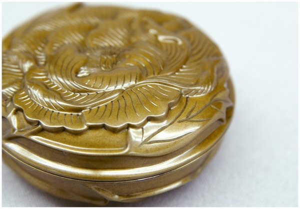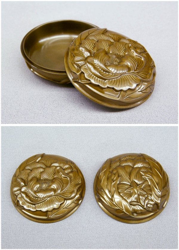 牡丹の模様を浮彫りで仕上げた、ひと手間かけた素敵な香合です。