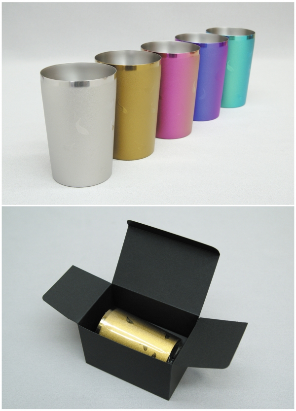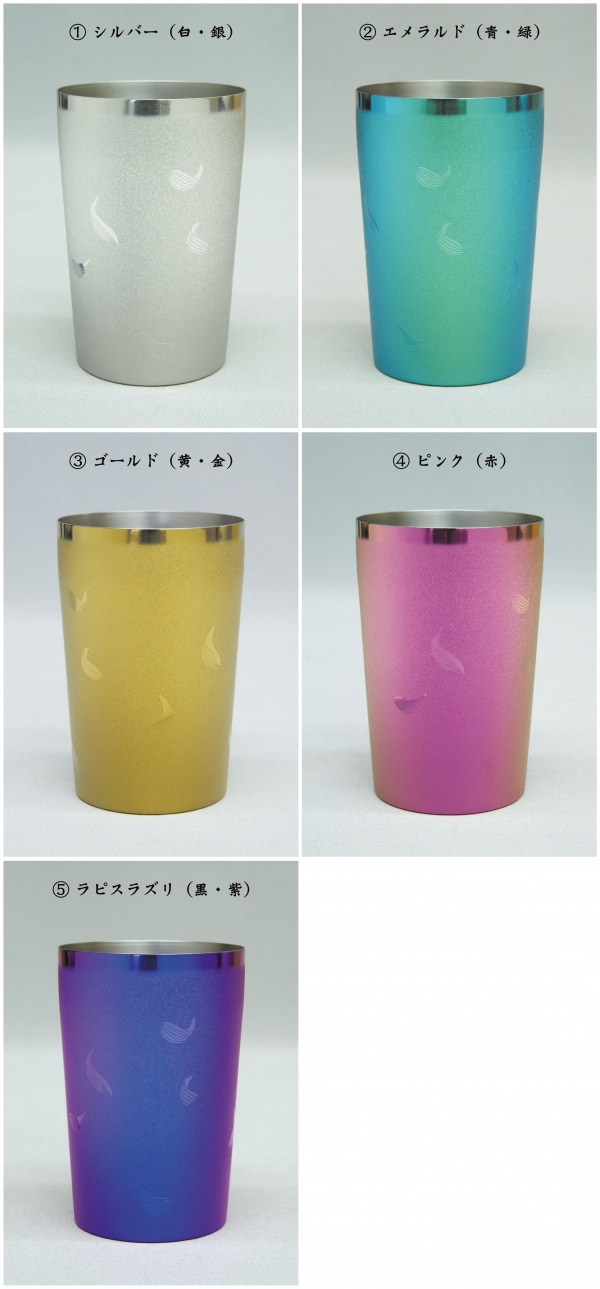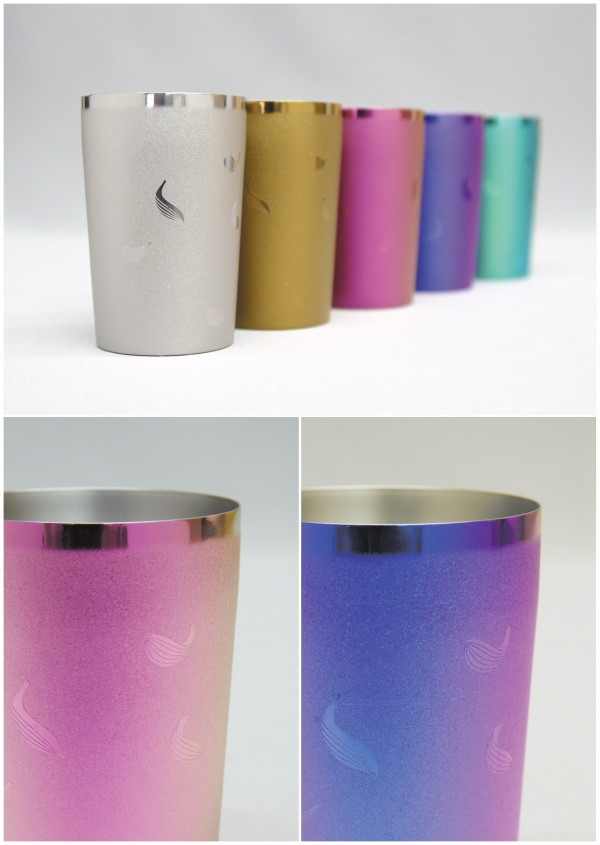 チタンが持つ様々な美しいカラーのタンブラーです。
