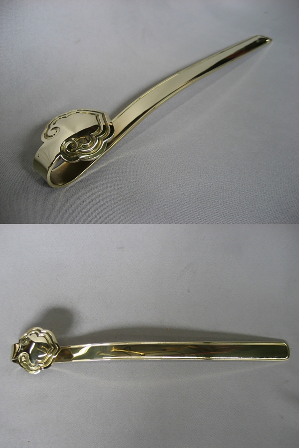 倉庫整理品です。 真鍮製 如意 ミガキ仕上げ品 くすんでいたのでミガキ直ししてあります。 紐房なし品ですが取り付け可能ですご相談ください。 工場ブログIIからのご紹介です。 他にも如意などをご紹介しています。