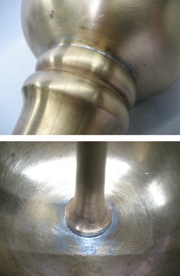 芯のネジの締め付け具合がゆるかったので、芯と灯皿はハンダ付けで止めてあります。 外すことはできません。