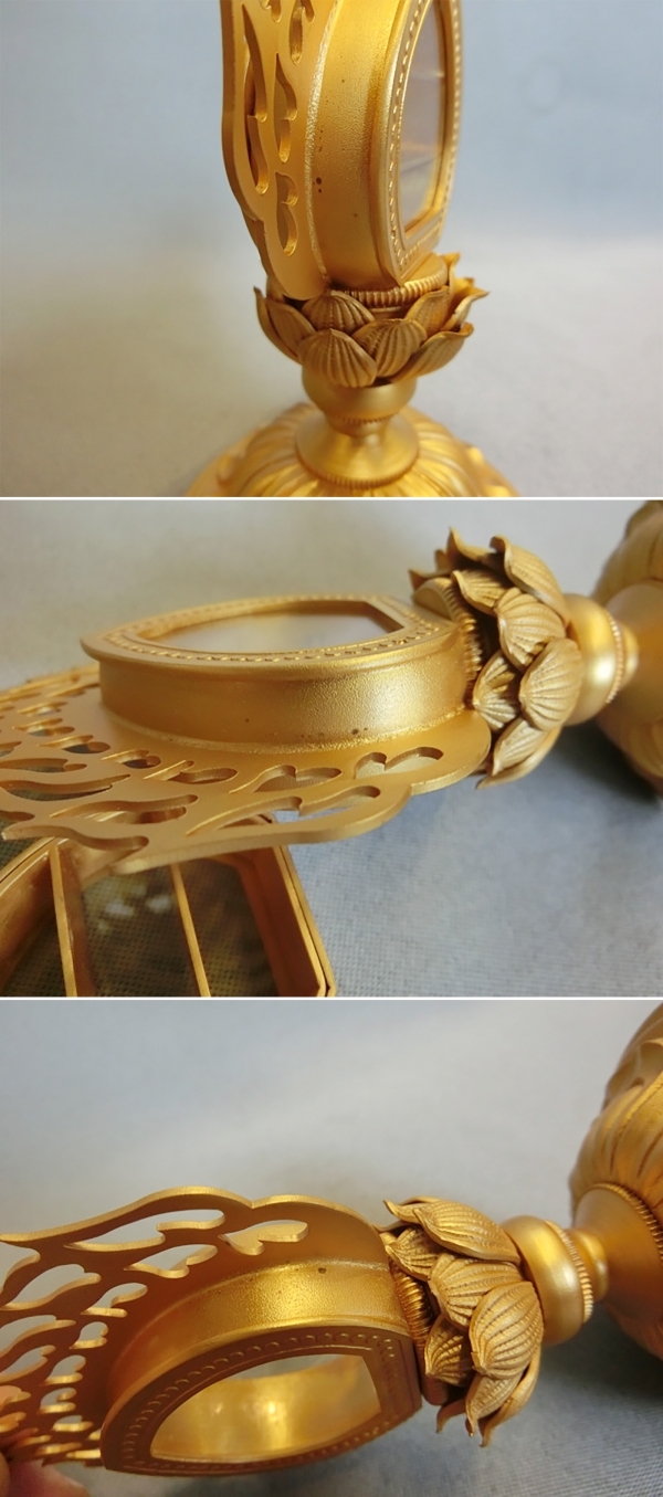 火炎と太鼓胴の付け根辺りに黒っぽい小さなシミがあります。