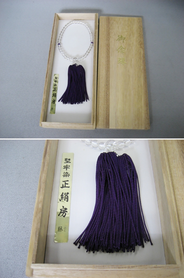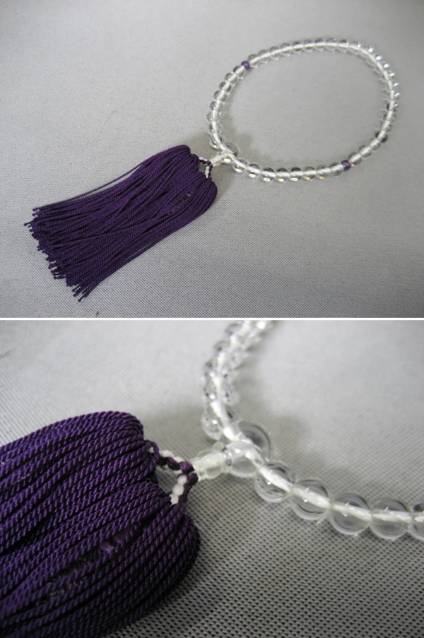 御念珠 本水晶 女物 一連 正絹房(藤)