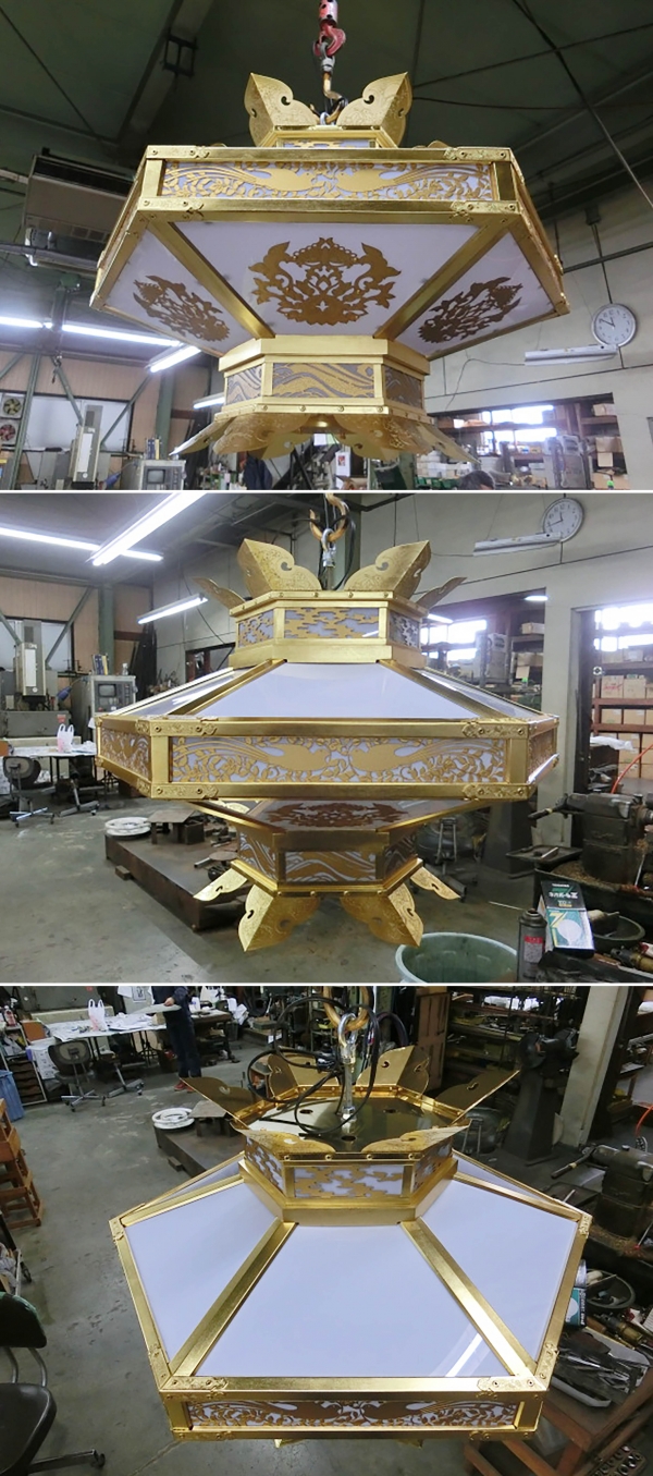 新六角菱照明 2尺5寸 金箔仕上品 「アウトレット品」