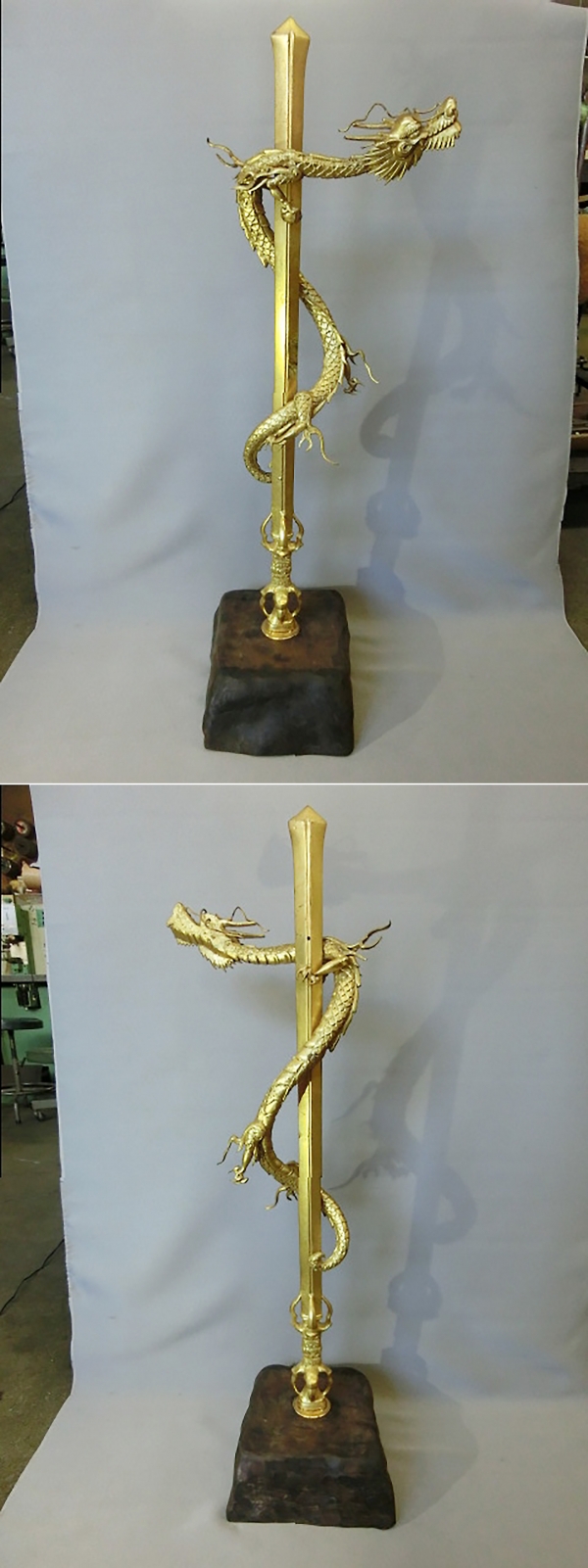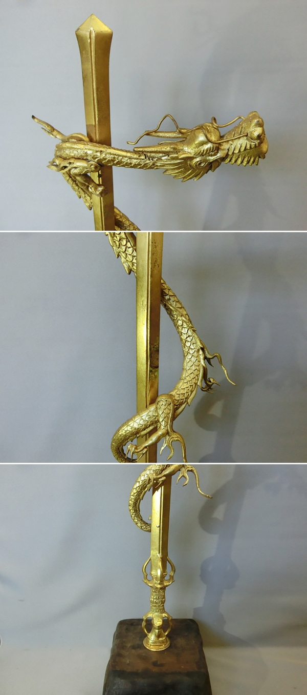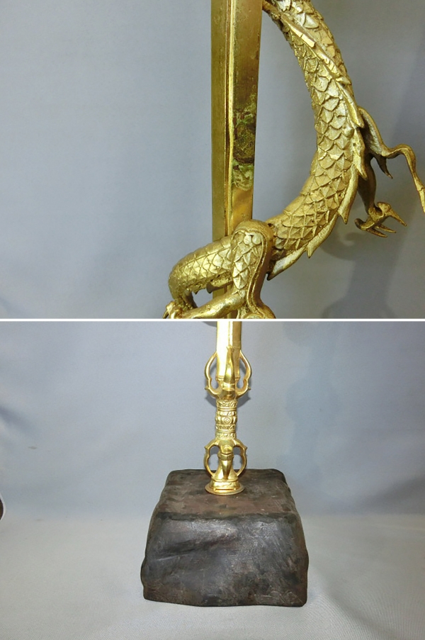 宝剣、龍は真鍮鋳物製、下台は木製です