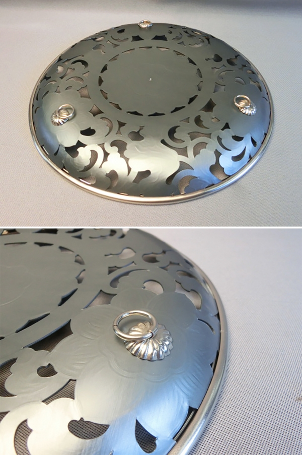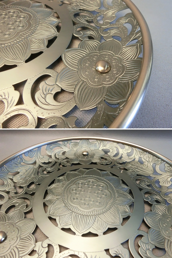 花皿 アルミ製 マットグレー仕上げ品(アルマイト加工) 覆輪は真鍮製(ニッケルメッキ仕上げ) 8寸 ※弔事の際にもご使用いただけます 弔事にご使用の際は白い紐を使用します。 工場ブログII(2021.08.04)のご紹介です。 |