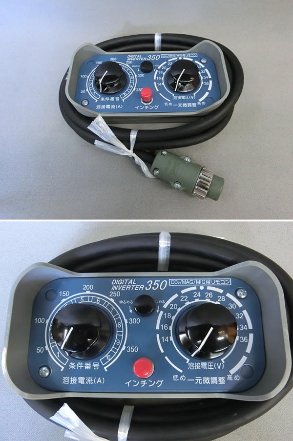 コントローラ表示部にDIGITAL INVERTER 350 CO₂/MAG/MIG用リモコンと書いてあります。