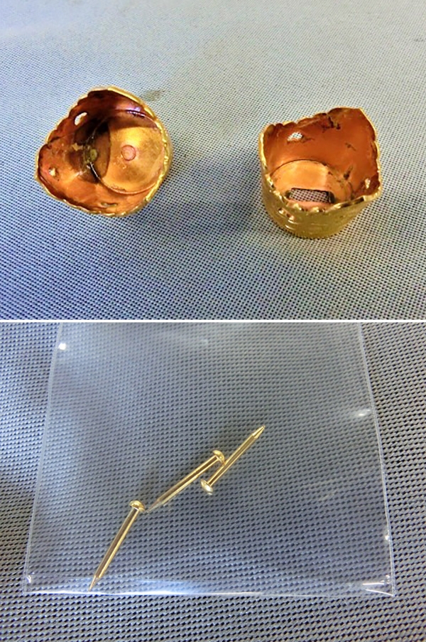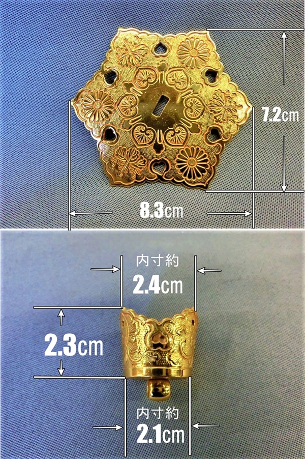 神楽鈴用の金具3点セット 金メッキ仕上げ品 金具の差し込み穴が3.5㎜×9.5㎜の長角穴になっています。 剣先型用かもしれません。 穴の加工(ヤスリ等で)すればほかの物にも合うかもしれません。 工場ブログII(2021.11.15)のご紹介です。 |